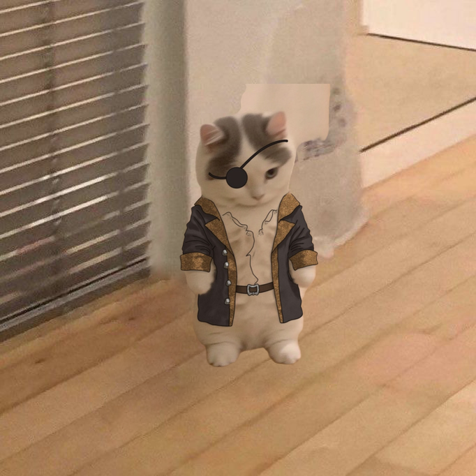 Michi sets sail on the hardwood seas, ready for plunder in dashing pirate attire.